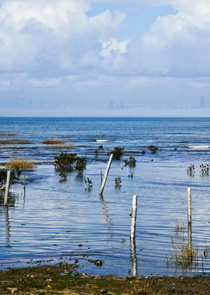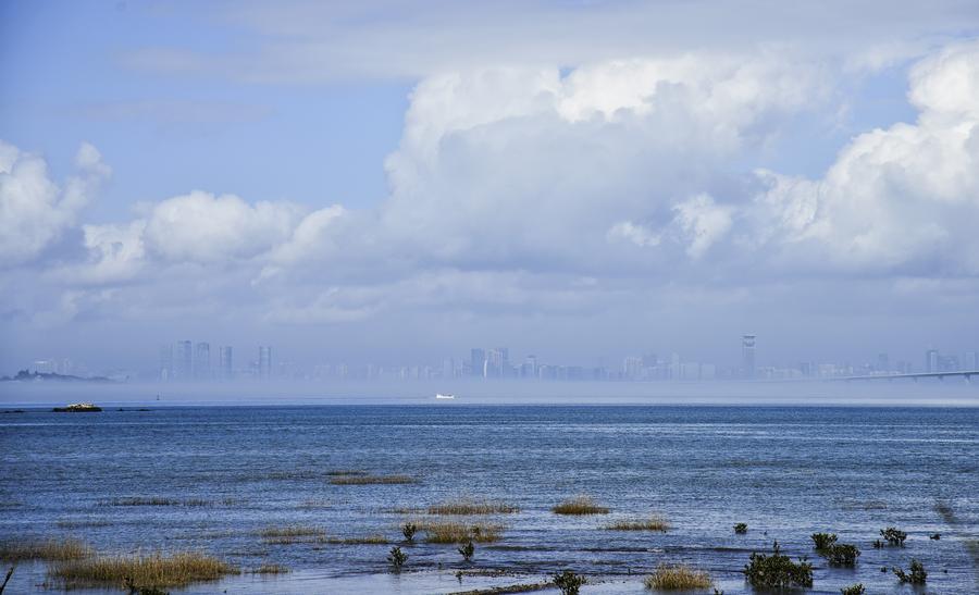 This photo taken on Feb. 21, 2024 shows a view of Xiamen in the distance seen from an estuary in Kinmen. (Xinhua/Chen Jianxing)