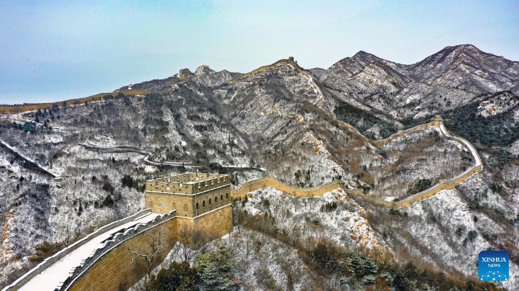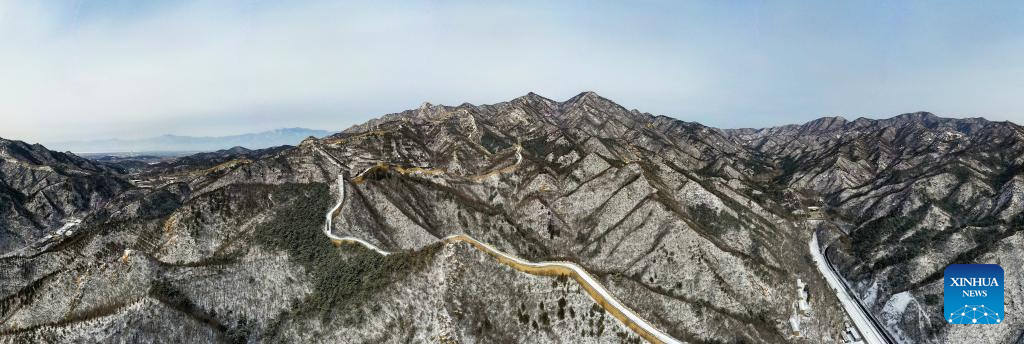 A drone photo taken on Feb. 21, 2024 shows the snow covered Badaling Great Wall in Beijing, capital of China. (Photo by Liu Yu/Xinhua)