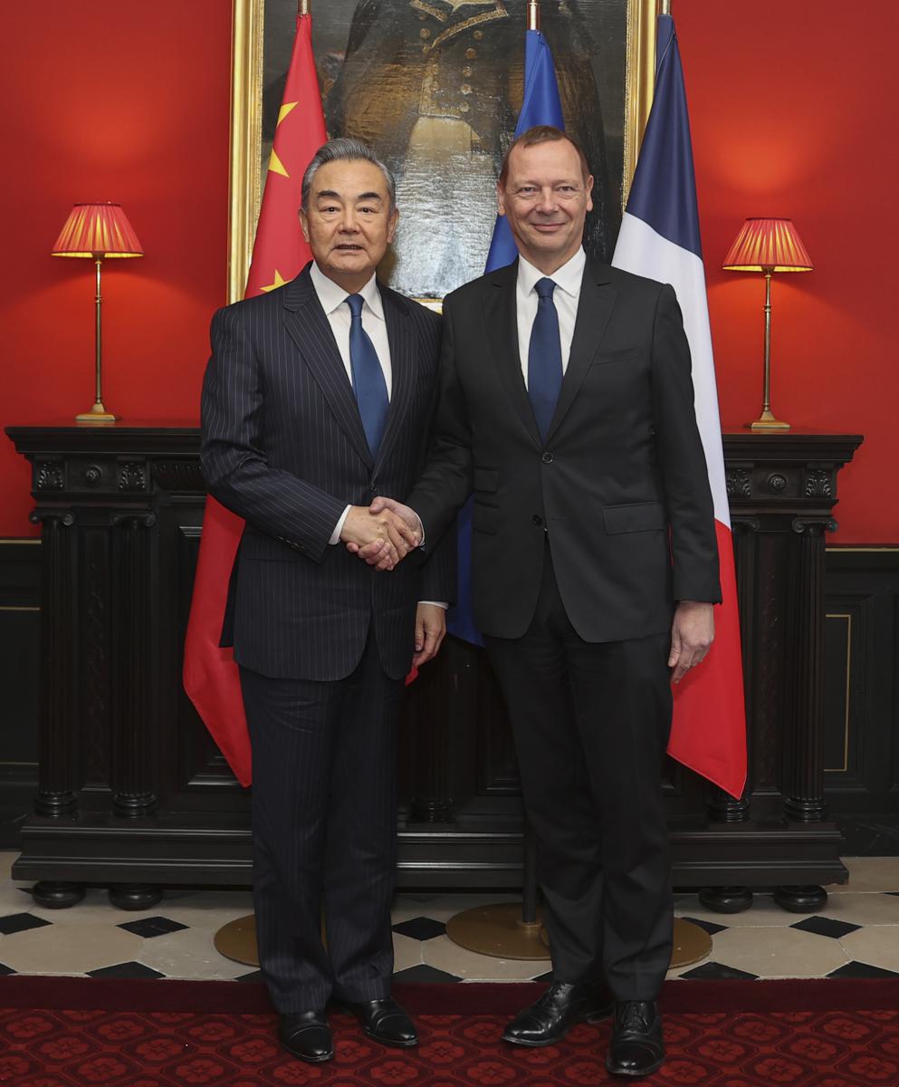 Foreign Minister Wang Yi, who is also director of the Office of the Central Commission for Foreign Affairs, co-chaired the 25th China-France Strategic Dialogue with Emmanuel Bonne, diplomatic counselor to French President Emmanuel Macron, in Paris on Tuesday.