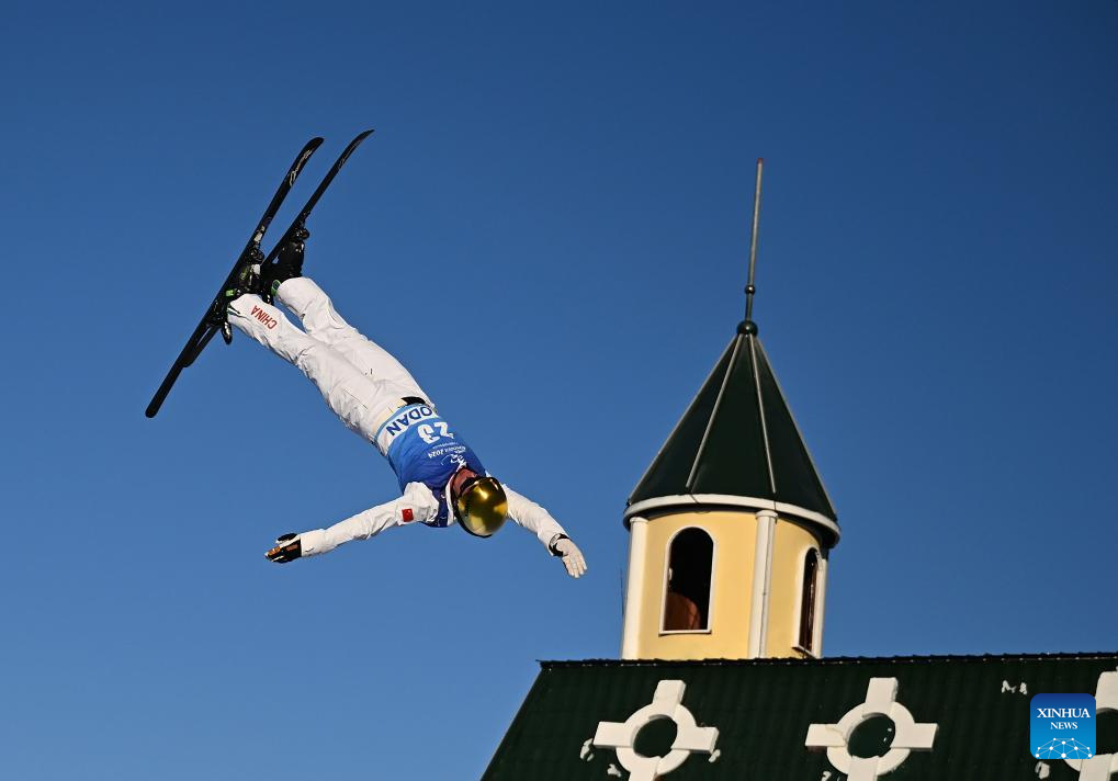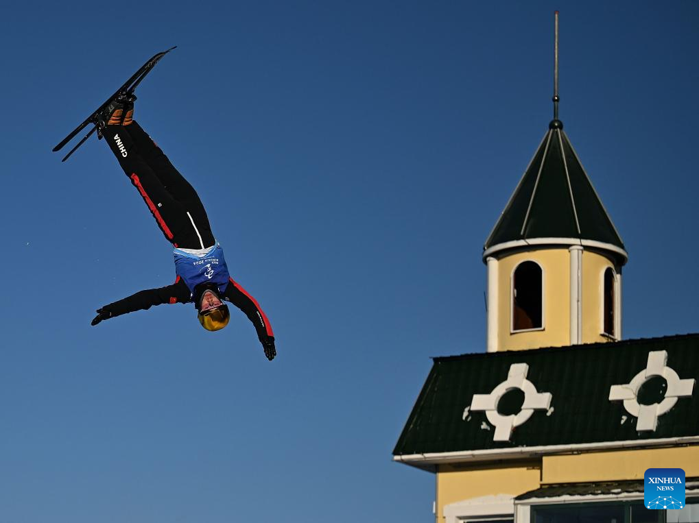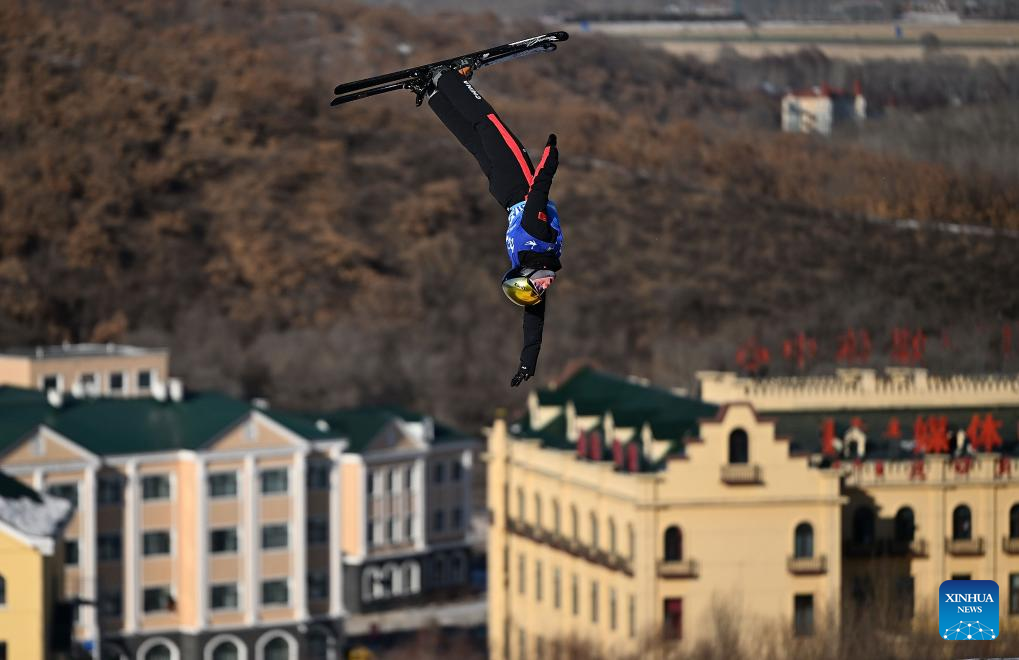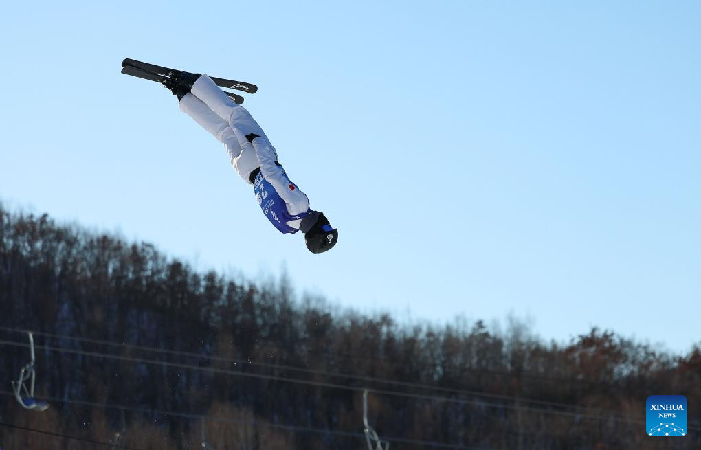 Jia Zongyang of Liaoning competes during the men's aerials competition at the 14th National Winter Games in Hulun Buir, north China's Inner Mongolia Autonomous Region, Feb. 21, 2024. (Xinhua/Mou Yu)