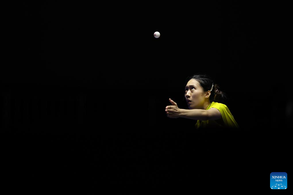Sun Yingsha of China competes against Jinnipa Sawettabut of Thailand during the women's team round of 16 match between China and Thailand at the ITTF World Team Table Tennis Championships Finals Busan 2024 in Busan, South Korea, Feb. 21, 2024. (Xinhua/Yang Shiyao)