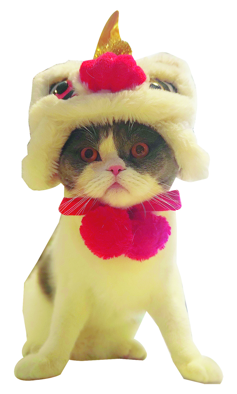 Lu Yan's cat is seen wearing a tiger-shaped hat after a bath. [Photo/China Daily]