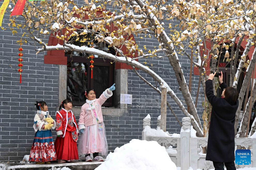 Tourists view the snow scenery in Luquan District in Shijiazhuang, north China's Hebei Province, Feb. 21, 2024. Various parts of China received snowfalls in recent days. (Photo by Chen Qibao/Xinhua)