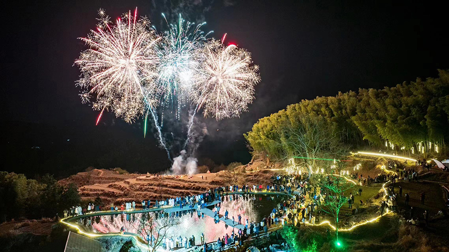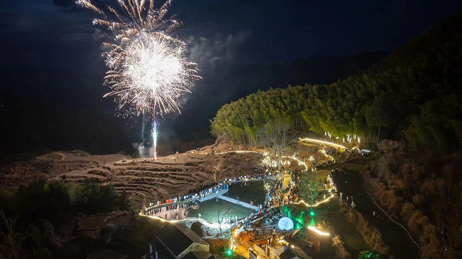 Fushan village in Xuancheng city, east China's Anhui Province, recently celebrated its first-ever New Year Fireworks Festival, transforming the serene night sky into a dazzling spectacle.
