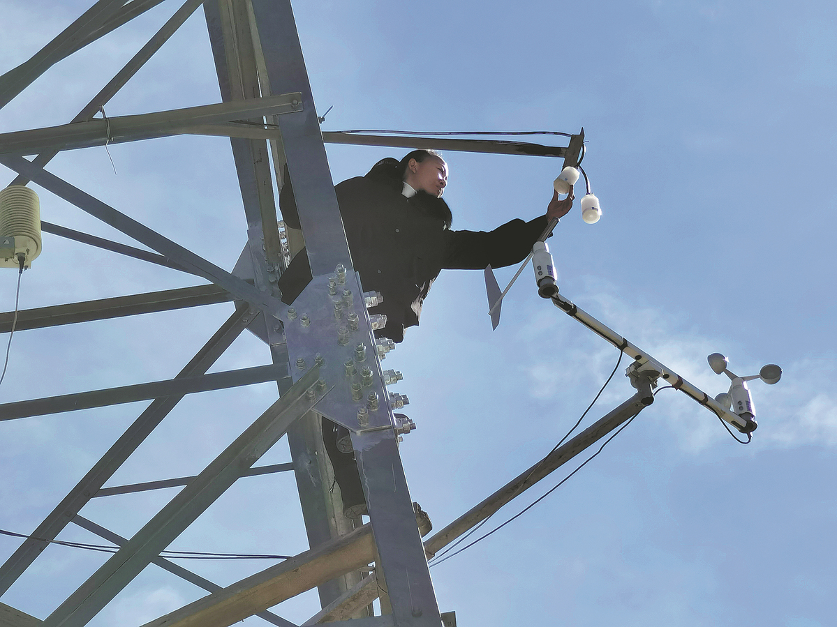 A worker inspects the greenhouse gas inlet at a monitoring station in Yunnan province in March. WANG CHANGSHAN/XINHUA
