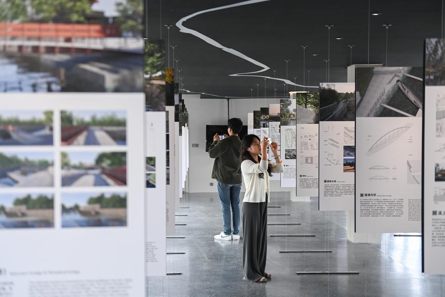 Visitors take photos at the Xiantan Art Museum in Xiantan Village, Deqing County of east China's Zhejiang Province, May 8, 2023, (Xinhua/Huang Zongzhi)