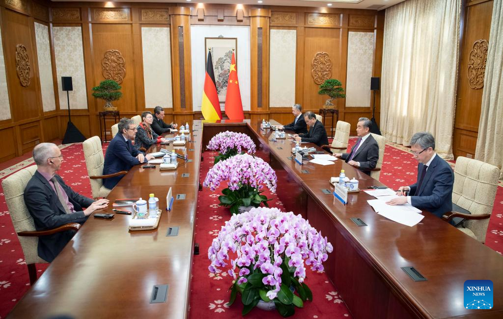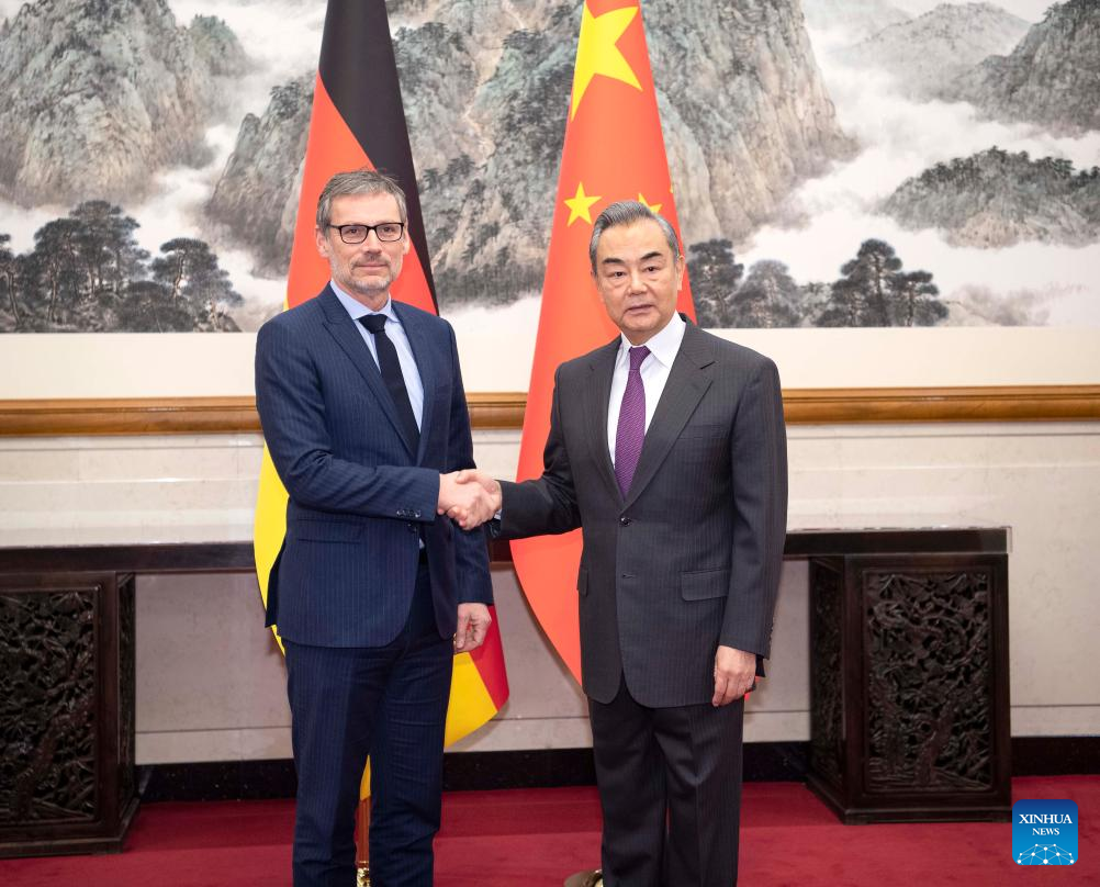 BEIJING, Feb. 23 (Xinhua) -- Chinese Foreign Minister Wang Yi met with Jens Plotner, foreign and security policy advisor to the German chancellor, in Beijing on Friday.