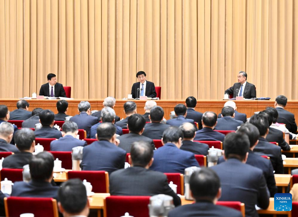BEIJING, Feb. 23 (Xinhua) -- Wang Huning, a senior official of the Communist Party of China (CPC), has urged firm efforts to advance the cause of national reunification.