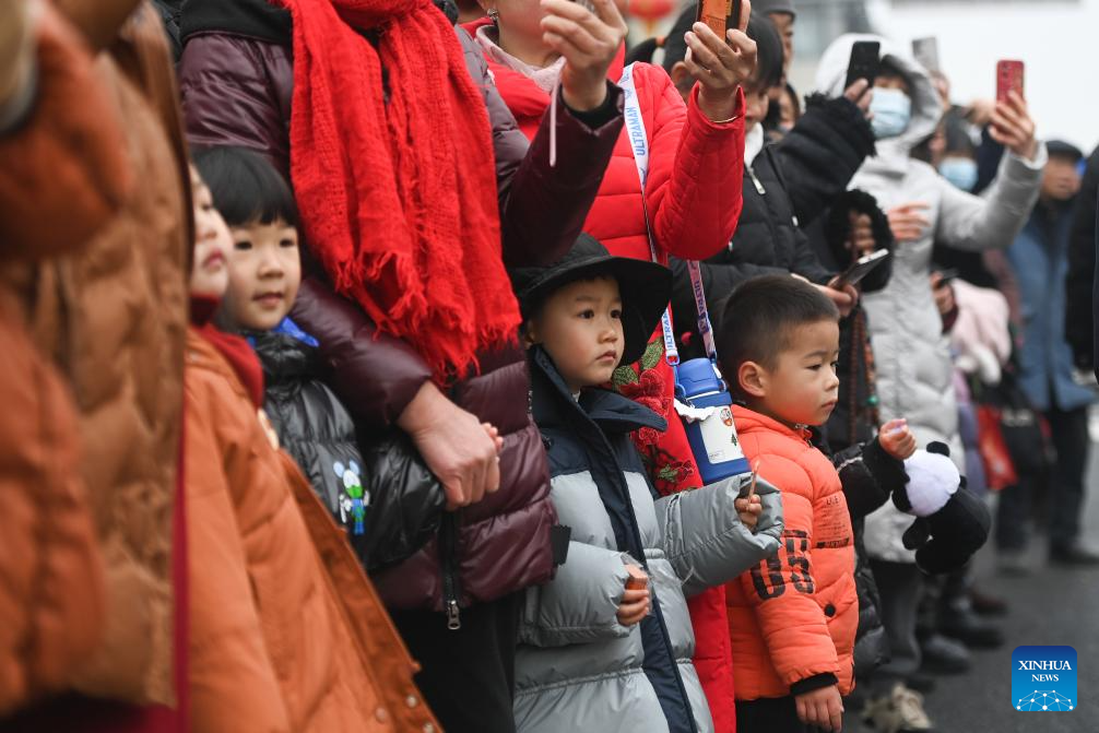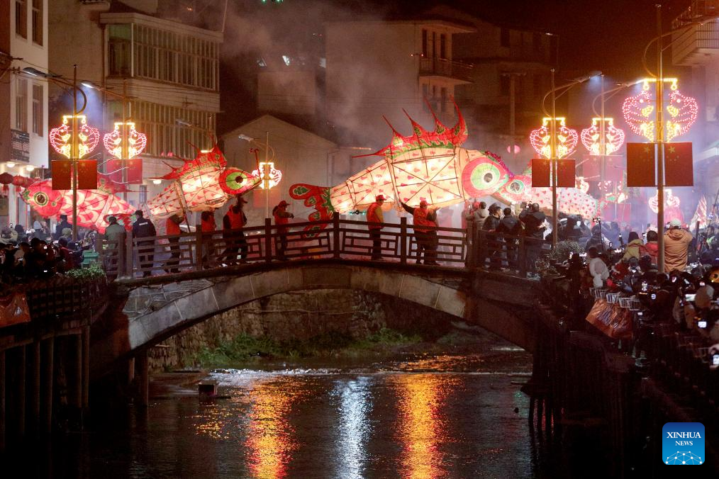 People watch an event celebrating the upcoming Chinese Lantern Festival in Hefu Town of Huzhou City, east China's Zhejiang Province, Feb. 23, 2024. (Xinhua/Huang Zongzhi)