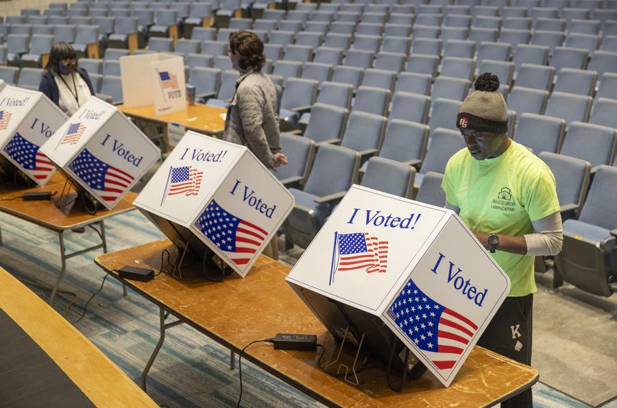 Voters cast their ballots at a polling station during the South Carolina Democratic presidential primary in Charleston, South Carolina, the United States, Feb. 3, 2024. (Photo by Andrew Whitaker/Xinhua)