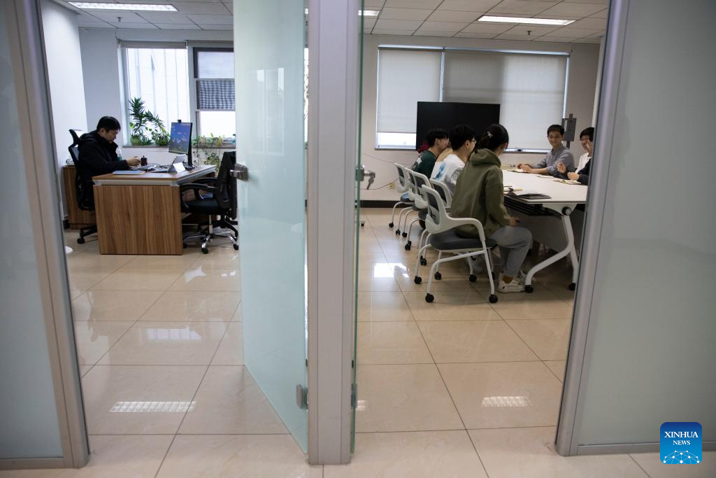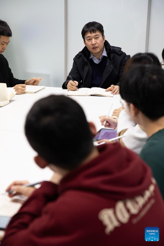Zhang Zhengtao attends a group meeting at the Institute of Automation of the Chinese Academy of Sciences (CASIA) in Beijing, capital of China, Jan. 25, 2024. (Xinhua/Jin Liwang)
