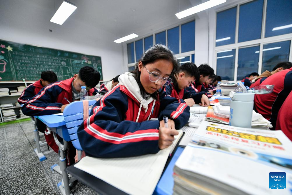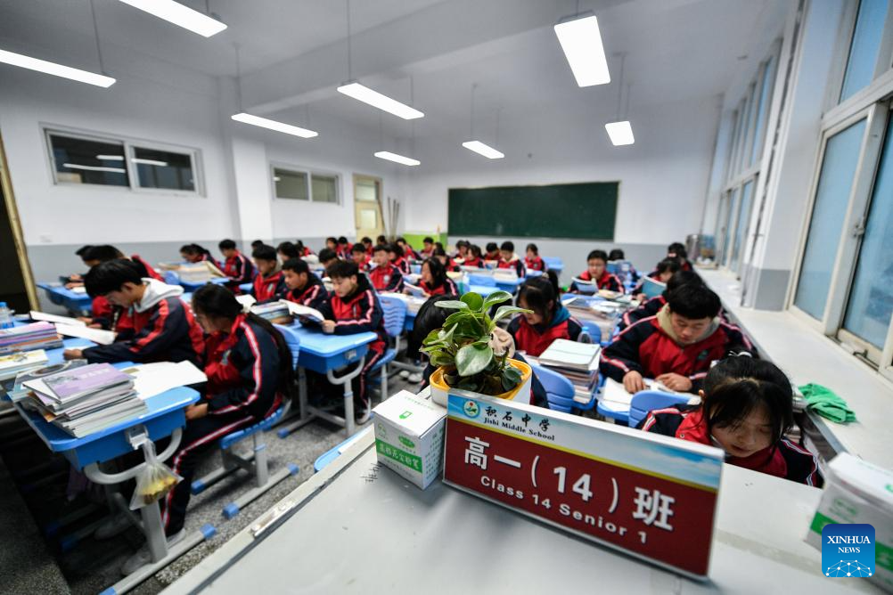 Students study at Jishi Middle School in Jishishan County, northwest China's Gansu Province, Feb. 26, 2024. (Xinhua/Lang Bingbing)