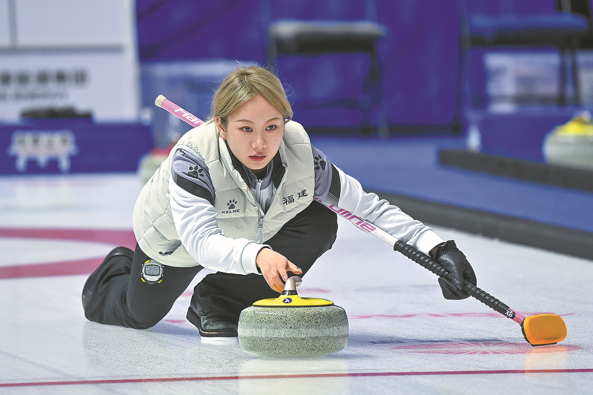 Curler Zhu Zeyangxu, who represented Fujian province, competes during the recent National Winter Games. YANG CHENGUANG/XINHUA