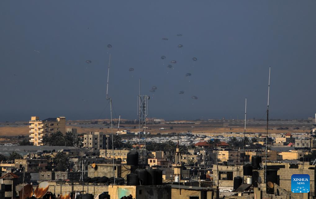 CAIRO, Feb. 27 (Xinhua) -- Egyptian air forces airdropped humanitarian aid to the Gaza Strip on Tuesday, Egypt's Al-Qahera News TV reported.