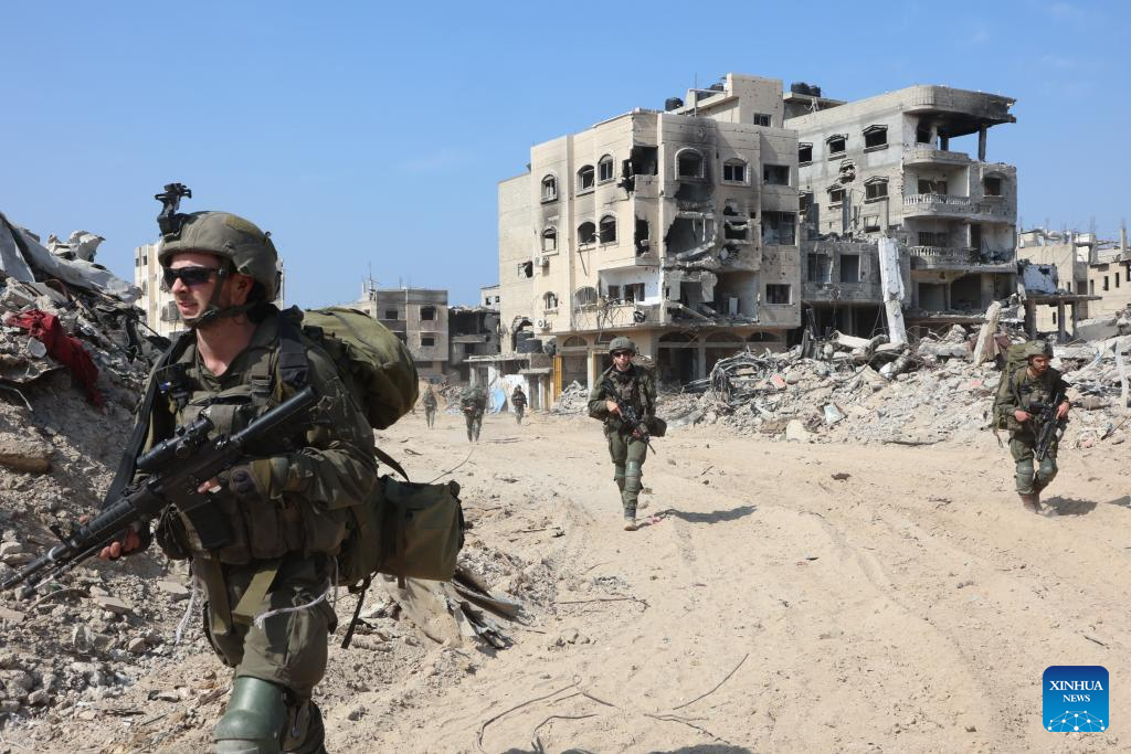 Israeli troops conduct military operations in the southern Gaza Strip city of Khan Yunis, on Feb. 28, 2024. (Photo by Gil Cohen Magen/Xinhua)