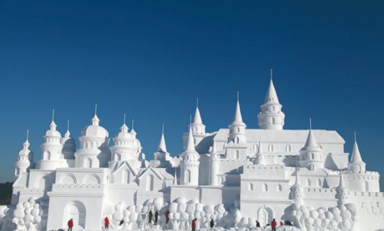 Photo shows snow sculptures in Jingyue Snow World in Changchun, northeast China's Jilin Province. (Photo/Changchun Daily)