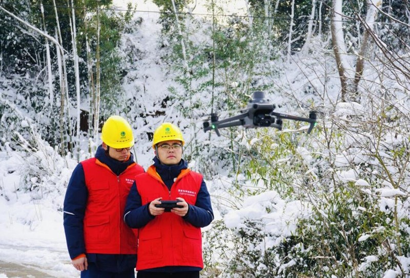 The staff members on duty at the power transmission panoramic monitoring center of the branch of the State Grid Hunan Electric Power Company Limited in Xiangtan city have been monitoring power lines remotely through 1,324 sets of visualization devices and four sets of ice condition monitoring devices installed on power transmission lines, while workers responsible for maintenance and inspection conduct on-site patrols with the help of drones to promptly obtain information on ice covering and carry out de-icing activities.
