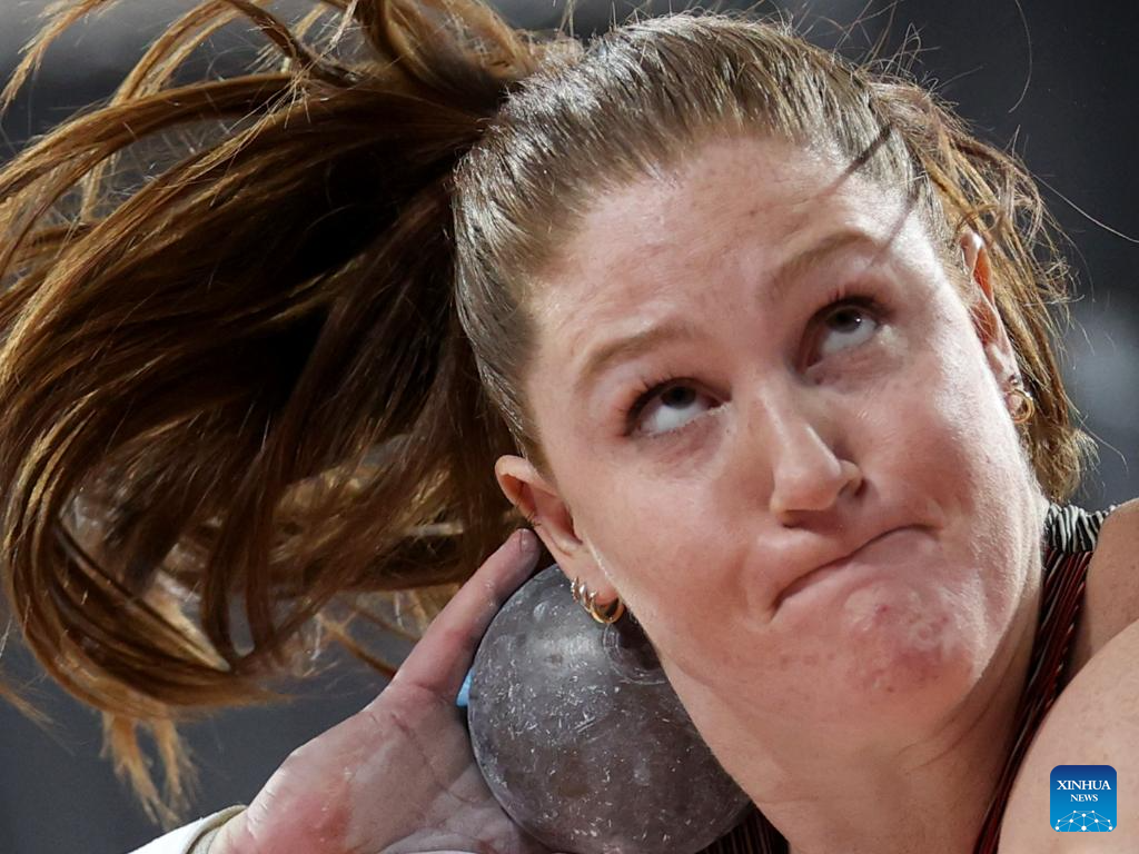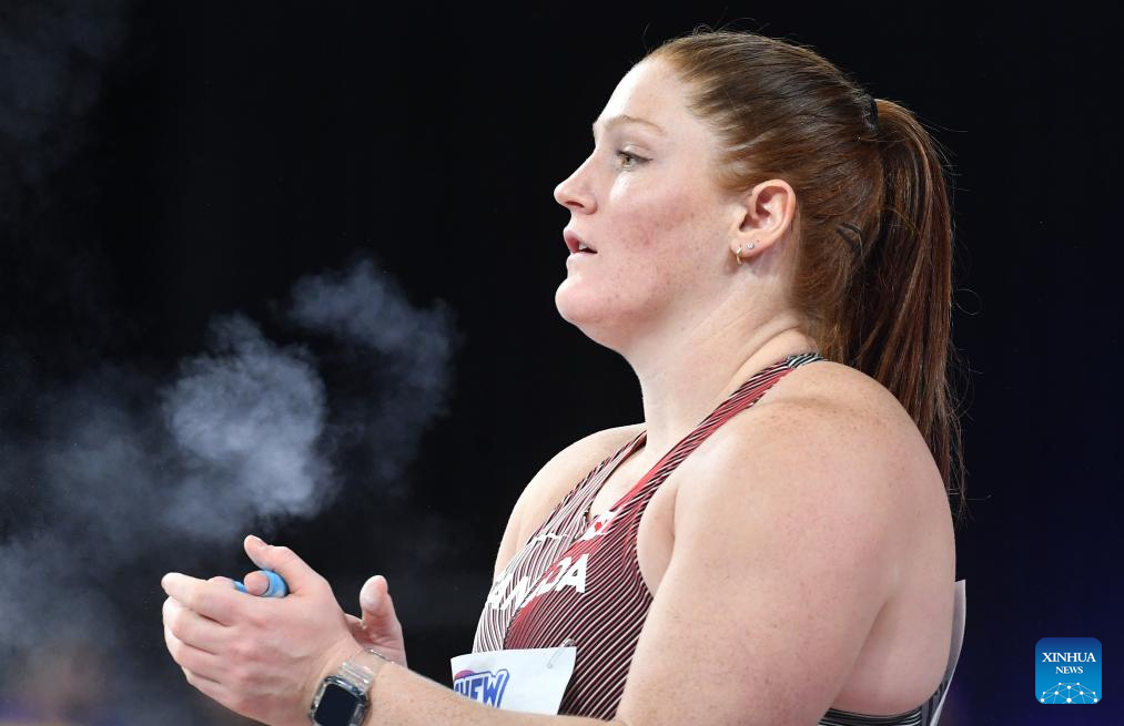 Sarah Mitton of Canada competes during the women's shot put final of the 2024 World Athletics Indoor Championships in Glasgow, Britain, March 1, 2024. (Xinhua/Li Ying)