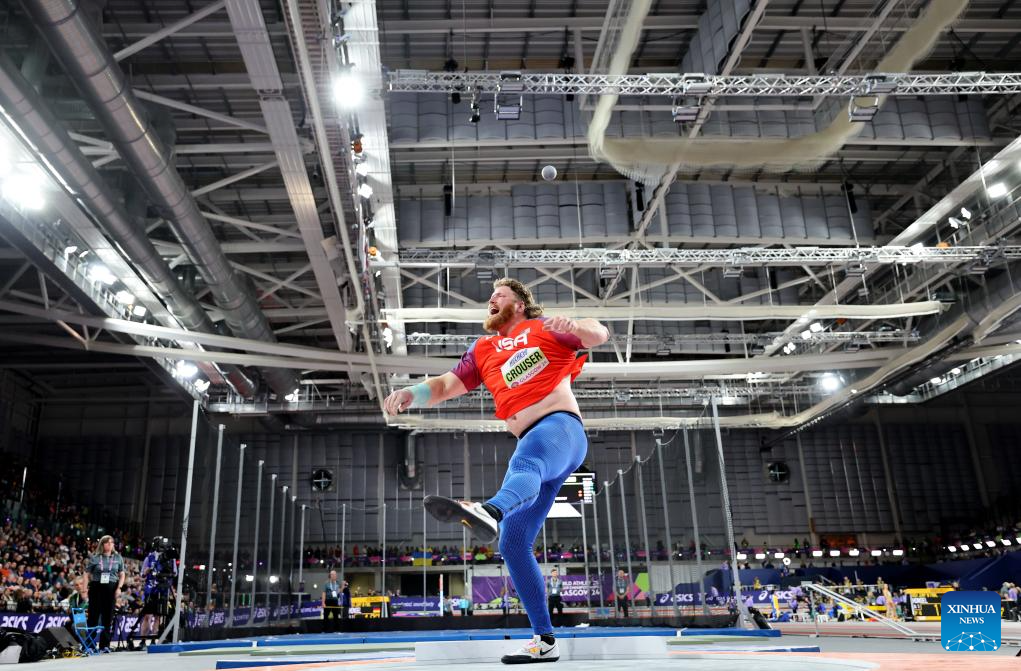Ryan Crouser of the United States competes during the men's shot put final of the 2024 World Athletics Indoor Championships in Glasgow, Britain, March 1, 2024. (Xinhua/Li Ying)
