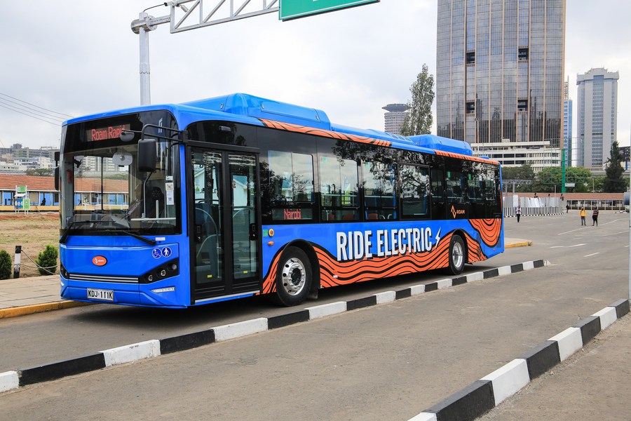 An electric bus is seen in Nairobi, capital of Kenya, on Oct. 19, 2022. (Photo by Charles Onyango/Xinhua)