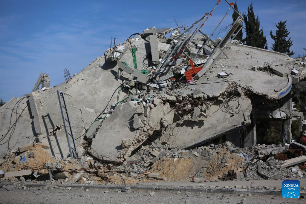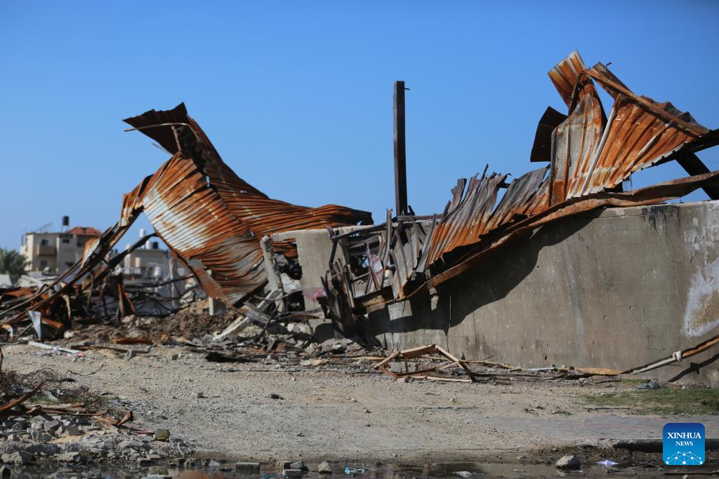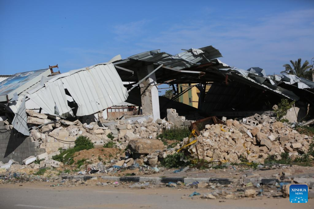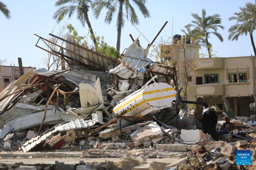 This photo taken on March 1, 2024 shows ruined buildings in central Gaza Strip city of Deir el-Balah.