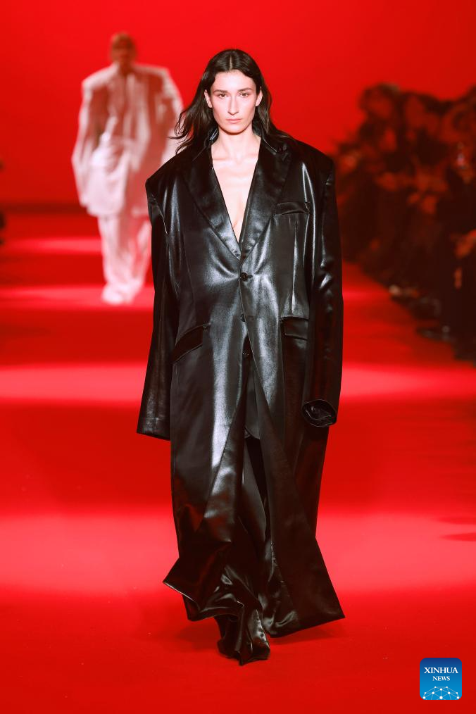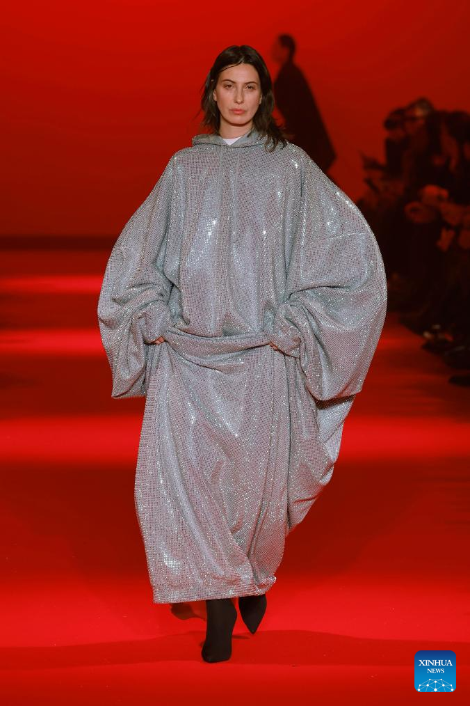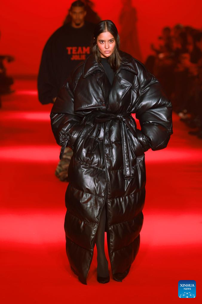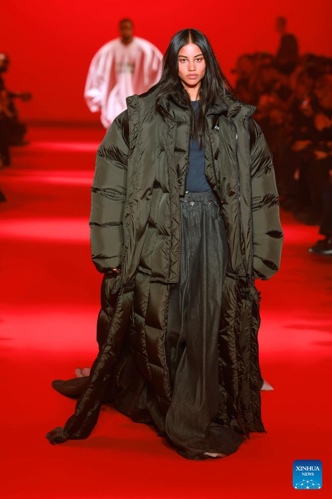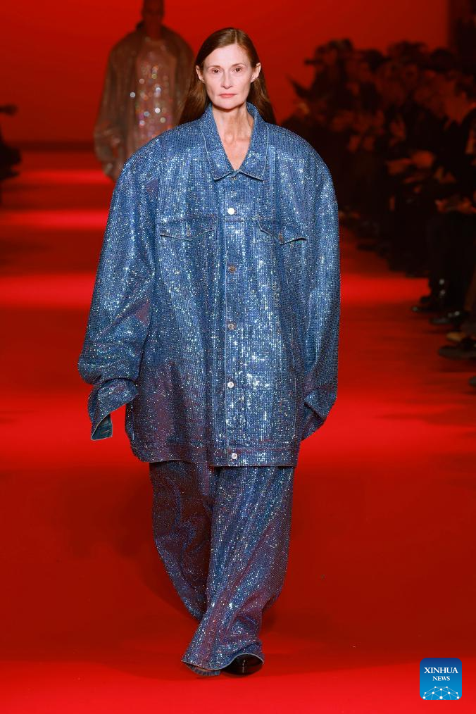 A model presents a creation from the Fall-Winter 2024/2025 ready-to-wear collections by Vetements during the Paris Fashion Week in Paris, France, on March 1, 2024. (MeetEurope/Handout via Xinhua)