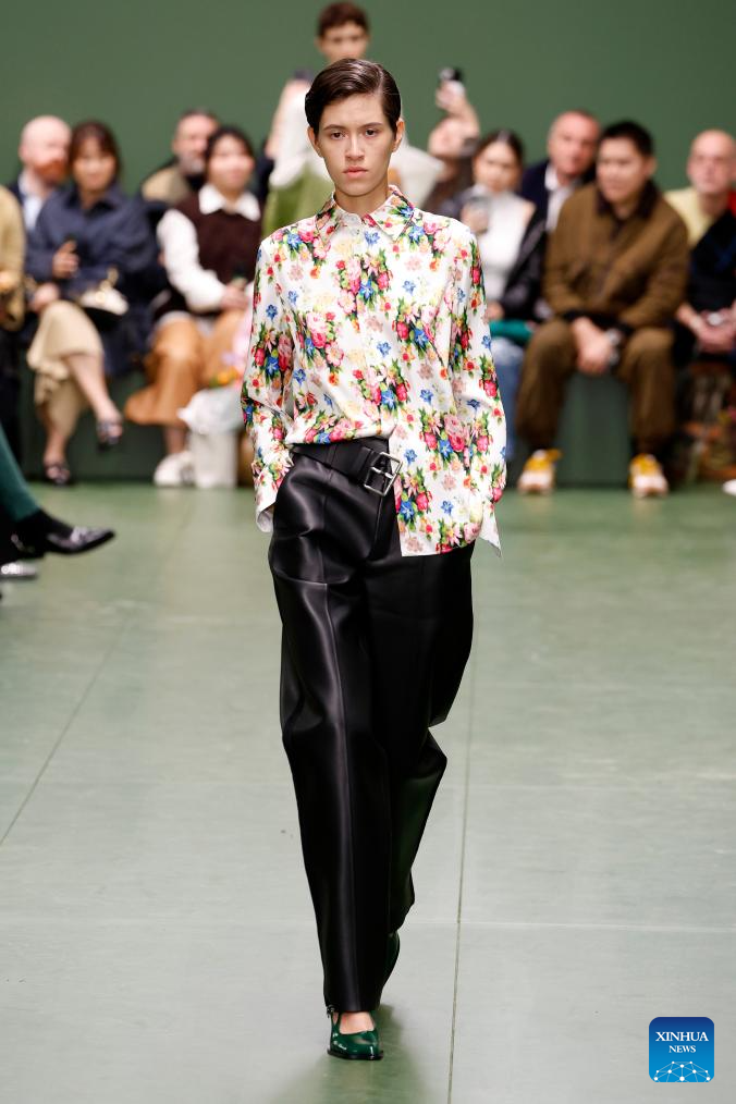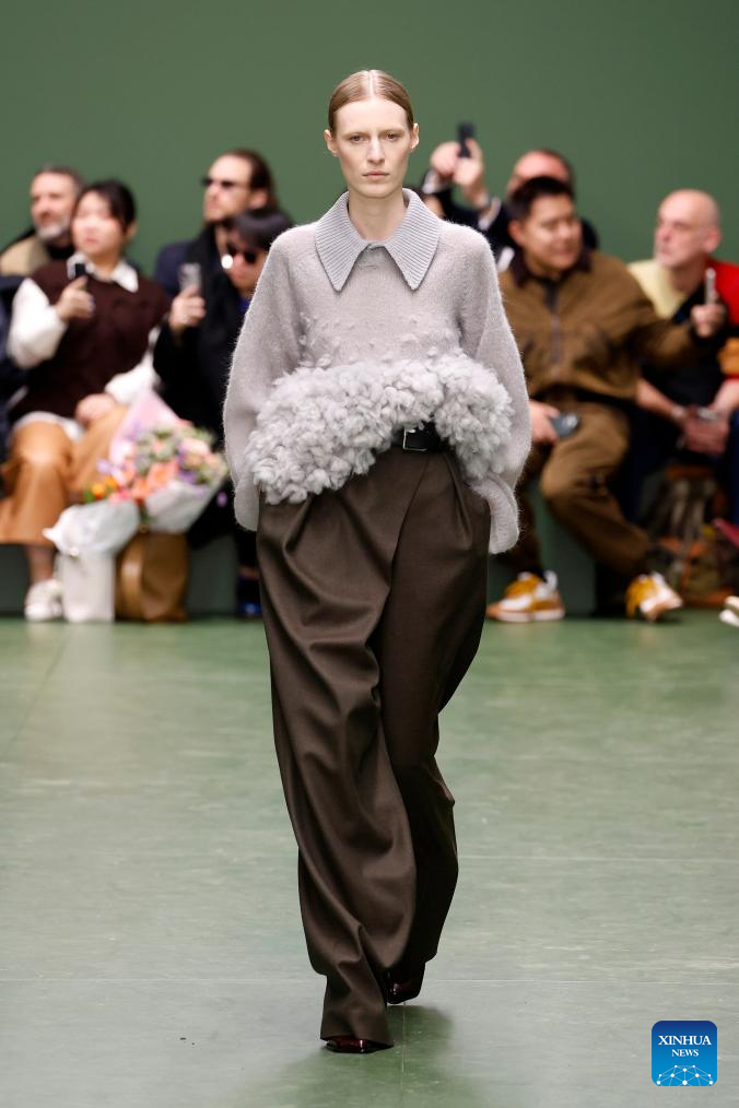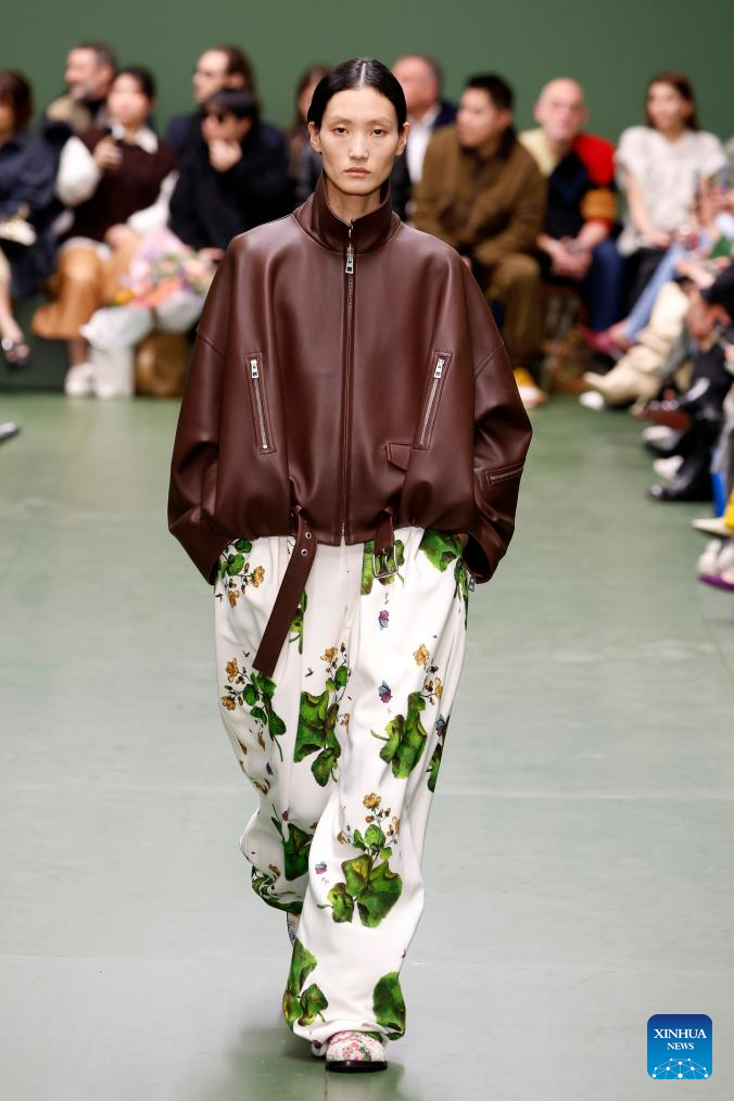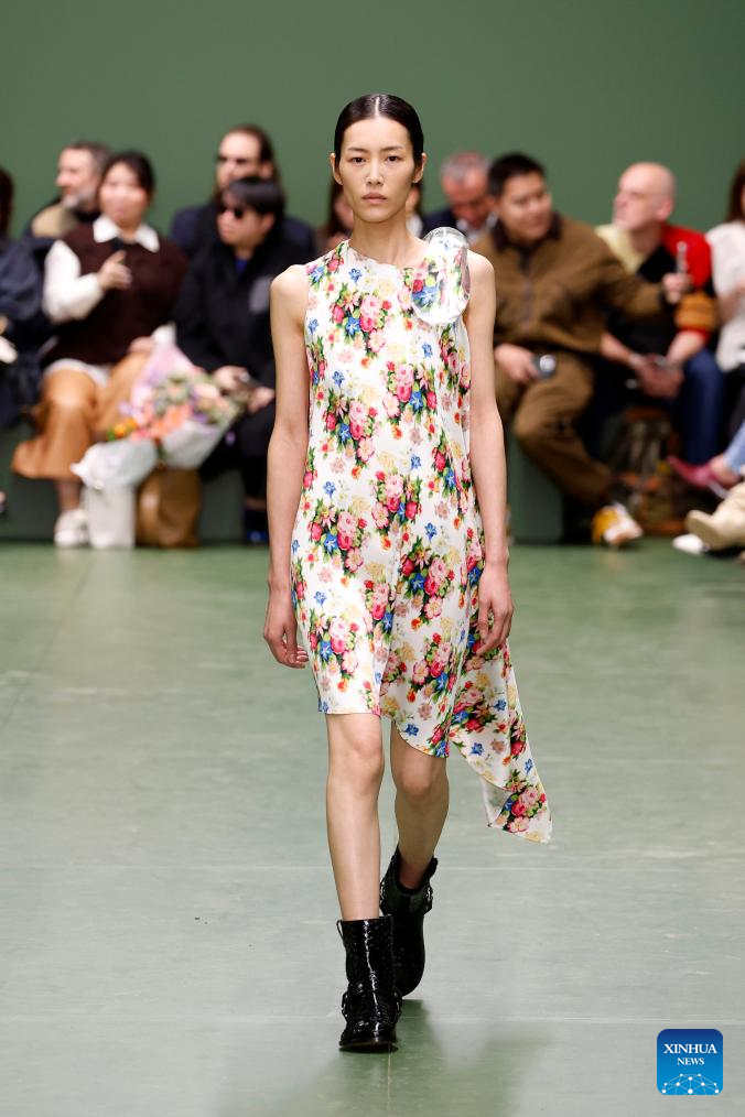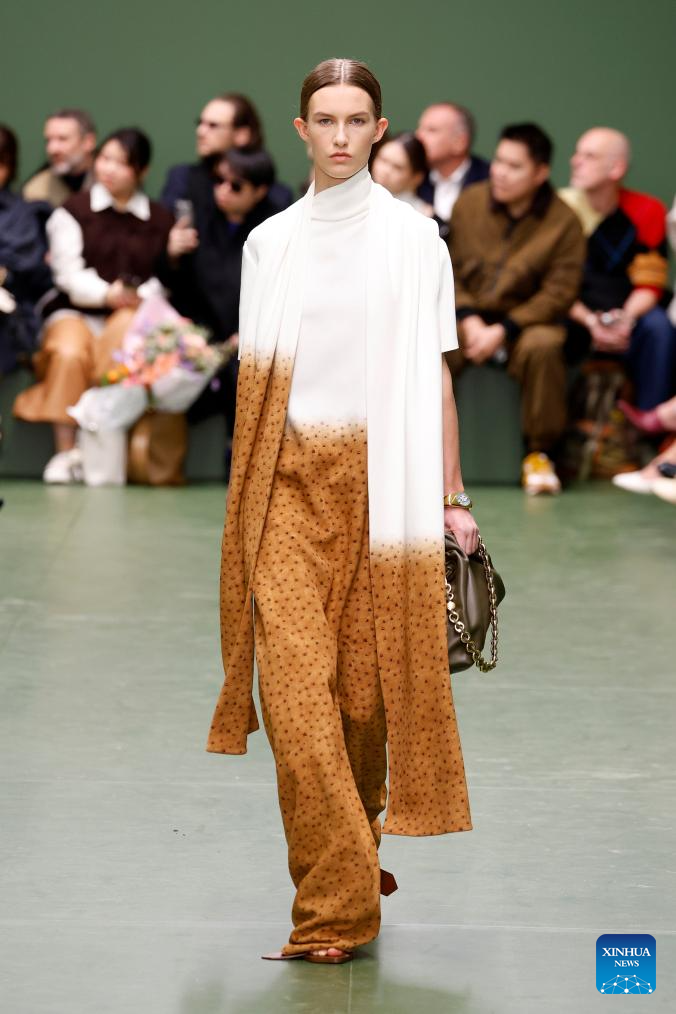 A model presents a creation from the Fall-Winter 2024/2025 ready-to-wear collections by Loewe during the Paris Fashion Week in Paris, France, on March 1, 2024. (MeetEurope/Handout via Xinhua)