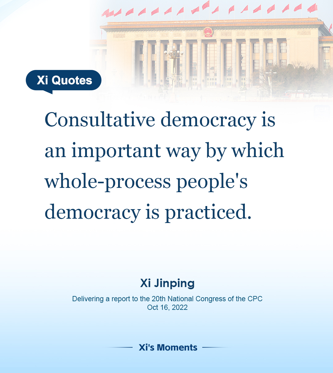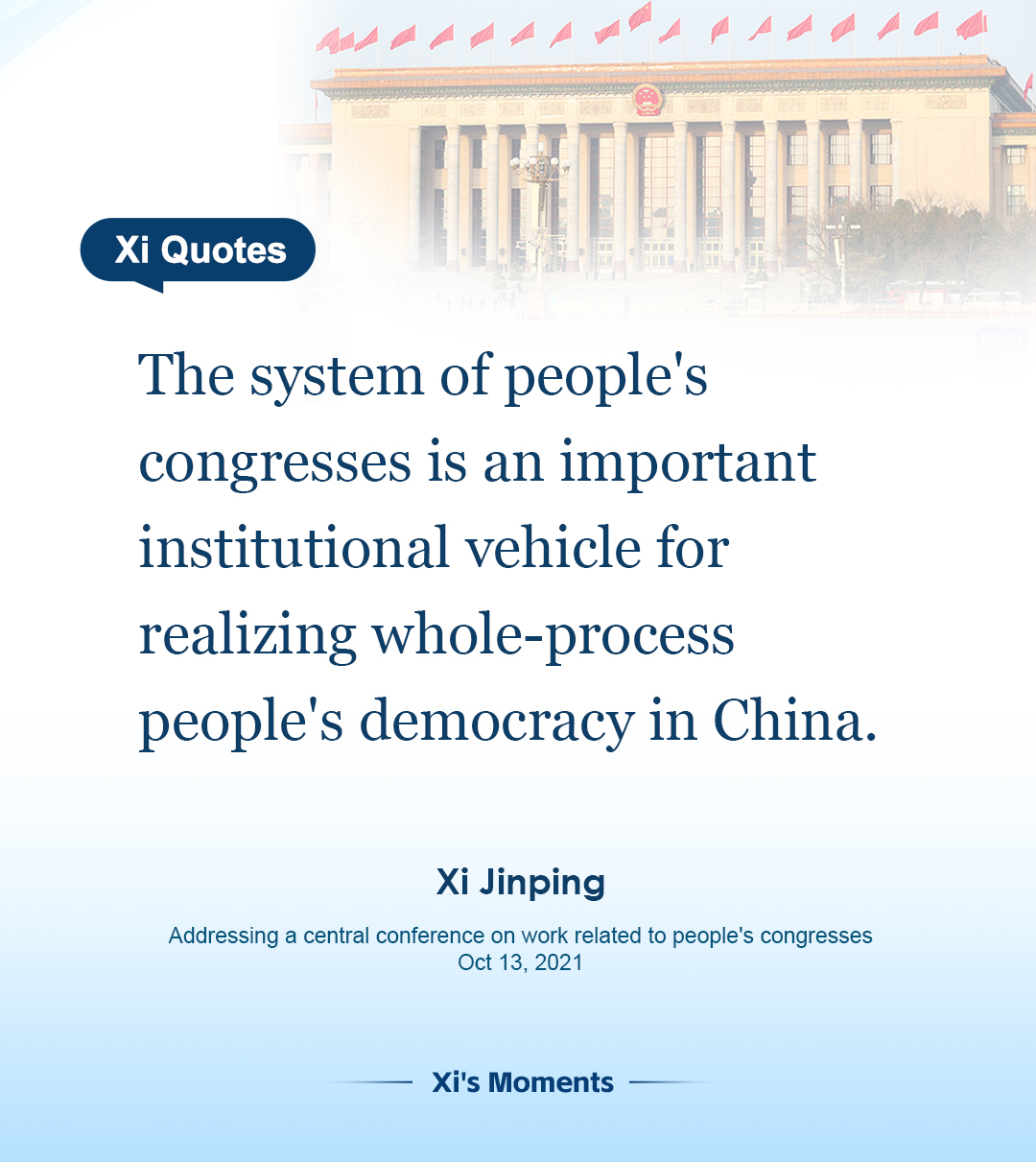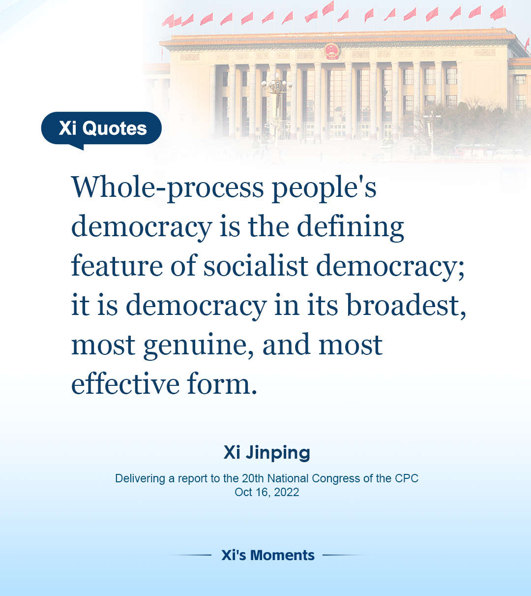 The annual sittings of China's top legislature and top political advisory body, or the two sessions, offer a window into the nation's practice of whole-process people's democracy. Here are some of President Xi Jinping's key remarks about whole-process people's democracy.
