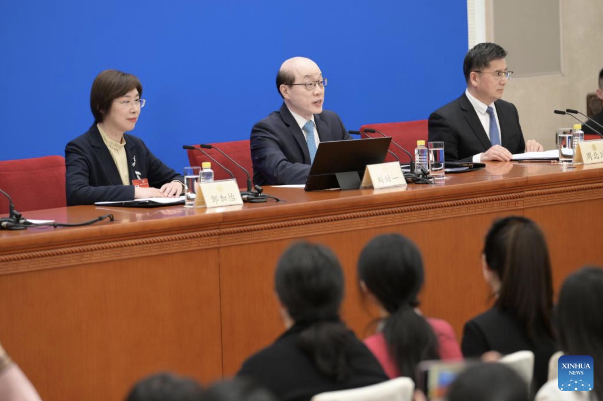 Liu Jieyi, spokesperson for the second session of the 14th Chinese People's Political Consultative Conference (CPPCC) National Committee, attends a press conference at the Great Hall of the People in Beijing, capital of China, March 3, 2024. The CPPCC National Committee, China's top political advisory body, held a press conference on Sunday, one day ahead of its annual session. (Xinhua/Li He)