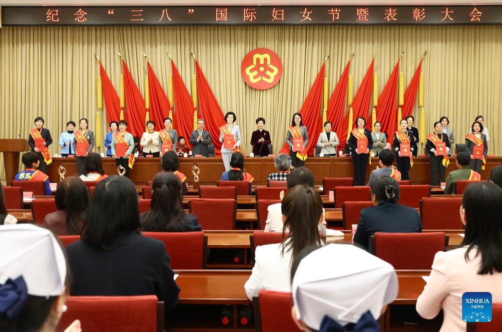 The All-China Women's Federation (ACWF) holds a meeting to mark International Women's Day and honor China's female role models in Beijing, capital of China, March 3, 2024. Chinese State Councilor and President of the ACWF Shen Yiqin attended the event and delivered remarks. (Xinhua/Zhang Yuwei)