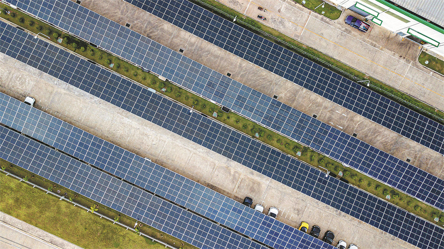 Photovoltaic panels generate electricity at a Sino-Thai joint venture project in Chonburi province, Thailand, in November. It is Thailand's largest photovoltaic project to be installed on top of a factory building. [Photo/Xinhua]