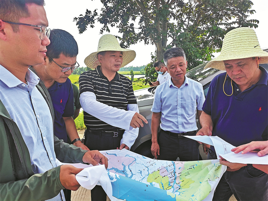 Political adviser Wei Yuansong (right) conducts field research at Poyang Lake near Nanchang, Jiangxi province, in July 2022. [Photo/China Daily]