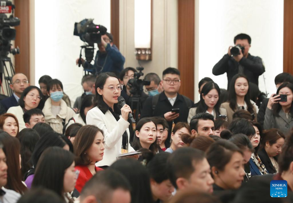 A journalist asks a question at a press conference of the second session of the 14th National People's Congress (NPC) at the Great Hall of the People in Beijing, capital of China, March 4, 2024. The NPC, China's national legislature, held a press conference on Monday, one day ahead of the opening of its annual session. (Xinhua/Lu Ye)