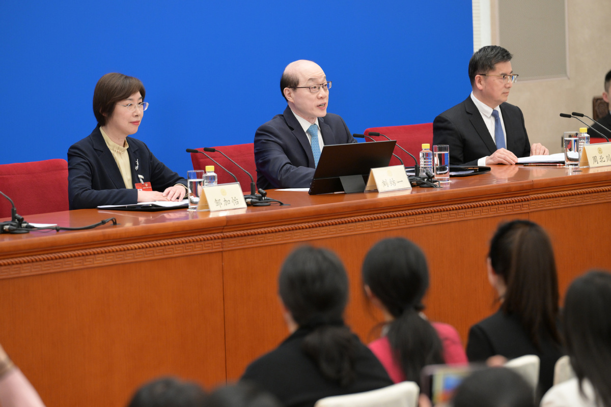Liu Jieyi, spokesperson for the second session of the 14th Chinese People's Political Consultative Conference National Committee, attends a news conference at the Great Hall of the People in Beijing, March 3, 2024. [Photo/Xinhua]