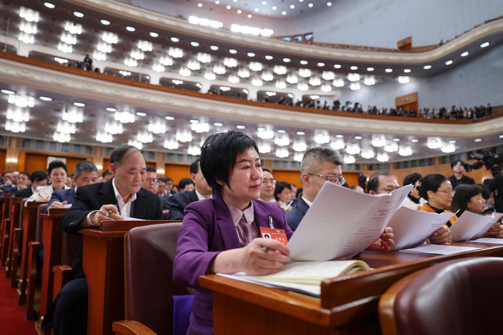 Shi Taifeng presides over the opening meeting of the second session of the 14th National Committee of the Chinese People's Political Consultative Conference (CPPCC) at the Great Hall of the People in Beijing, capital of China, March 4, 2024. (Xinhua/Huang Jingwen)