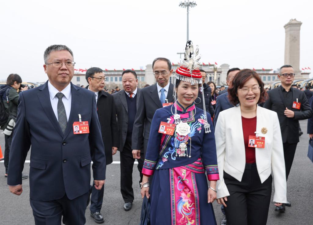 Members of the 14th National Committee of the Chinese People's Political Consultative Conference (CPPCC) walk towards the Great Hall of the People for the opening meeting of the second session of the 14th CPPCC National Committee in Beijing, capital of China, March 4, 2024. (Xinhua/Wang Jingqiang)