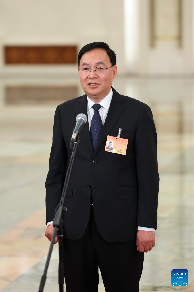 Zhang Yuzhuo, chairman of the State-owned Assets Supervision and Administration Commission of the State Council, gives an interview after the opening meeting of the second session of the 14th National People's Congress (NPC) at the Great Hall of the People in Beijing, capital of China, March 5, 2024. (Xinhua/Mu Yu)