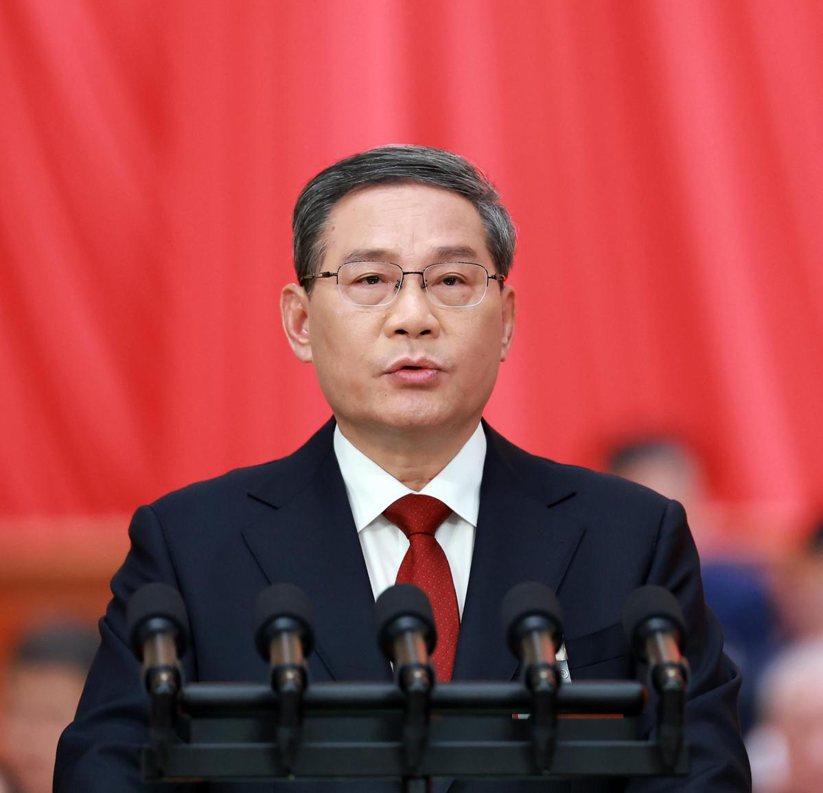 Premier Li Qiang delivers the Government Work Report at the opening meeting of the second session of the 14th National People's Congress at the Great Hall of the People in Beijing on Tuesday. FENG YONGBIN / CHINA DAILY