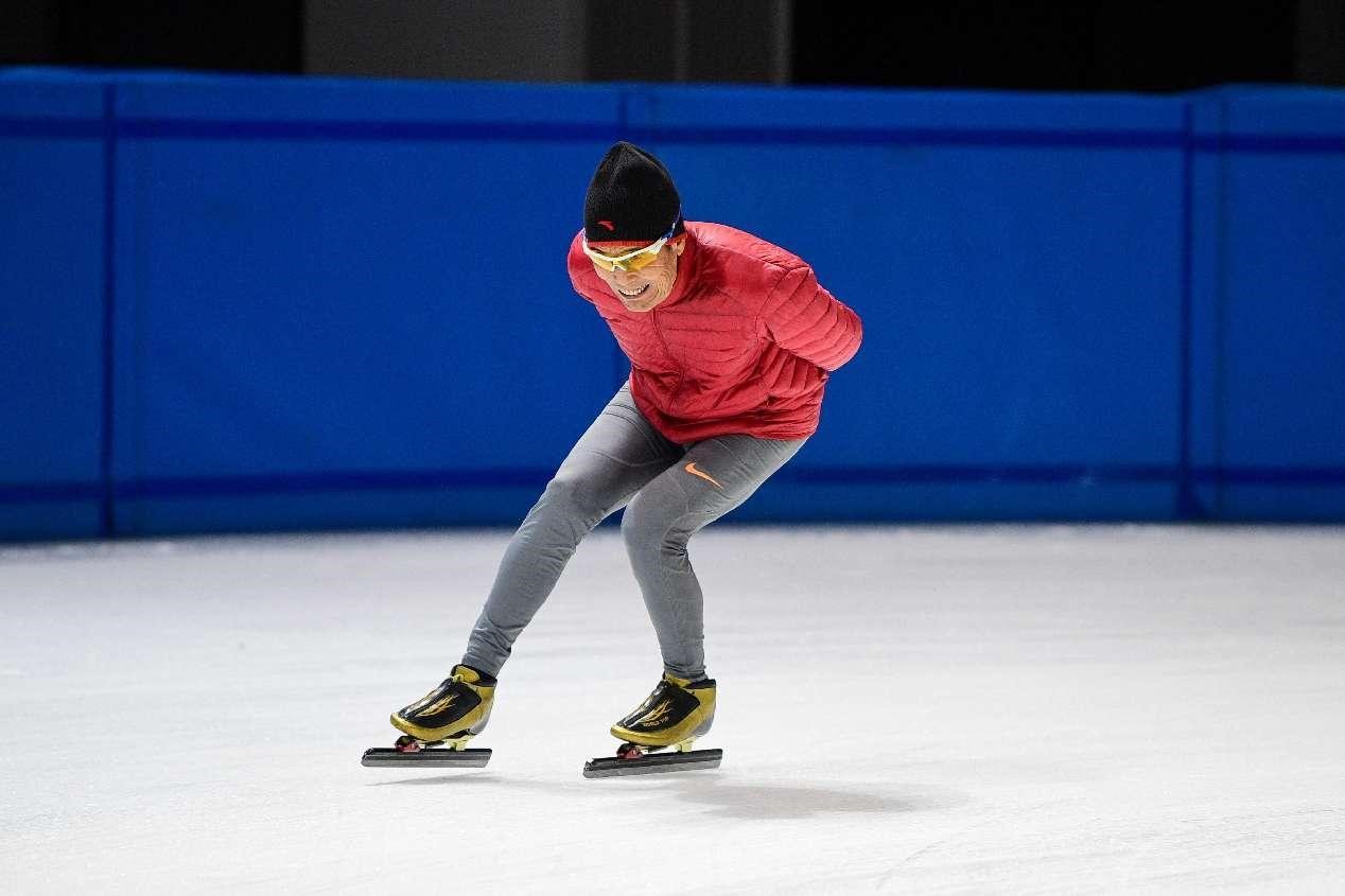 A senior citizen skates on an indoor ice rink in Hohhot, north China's Inner Mongolia autonomous region. (People's Daily Online/Wang Xiaobo)
