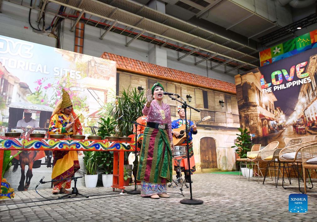 Actors perform at the booth of the Philippines during the ITB Berlin travel trade show in Berlin, Germany, March 5, 2024. The ITB Berlin travel trade show kicked off here on Tuesday and will last until March 7. (Xinhua/Ren Pengfei)
