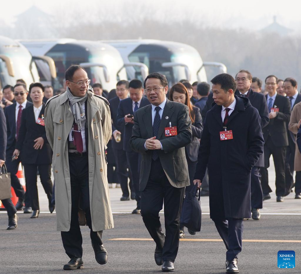 Members of the 14th National Committee of the Chinese People's Political Consultative Conference (CPPCC) walk towards the Great Hall of the People for the second plenary meeting of the second session of the 14th CPPCC National Committee in Beijing, capital of China, March 7, 2024. (Xinhua/Wang Jianhua)