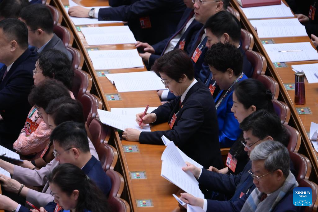 The second plenary meeting of the second session of the 14th National Committee of the Chinese People's Political Consultative Conference (CPPCC) is held at the Great Hall of the People in Beijing, capital of China, March 7, 2024. (Xinhua/Li He)