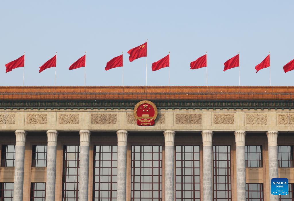 This photo taken on March 7, 2024 shows the Great Hall of the People ahead of the second plenary meeting of the second session of the 14th National Committee of the Chinese People's Political Consultative Conference (CPPCC) in Beijing, capital of China. (Xinhua/Wang Jingqiang)