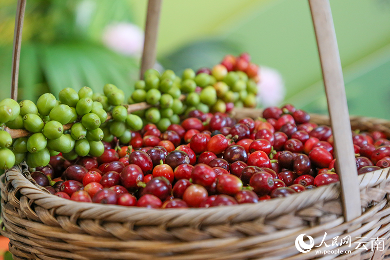 Photo shows coffee beans at a plantation in southwest China's Yunnan Province. (People's Daily Online/Hu Zunhui)