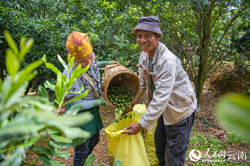 Villagers pick Australian macadamia nuts. (People's Daily Online/Hu Zunhui)
