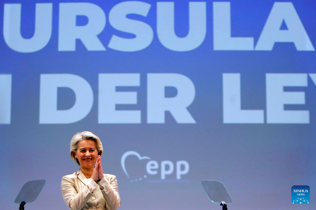 BUCHAREST, March 7 (Xinhua) -- The incumbent European Commission (EC) President Ursula von der Leyen has won the nomination from the European People's Party (EPP), the largest political group in the European Parliament, for a second term.
