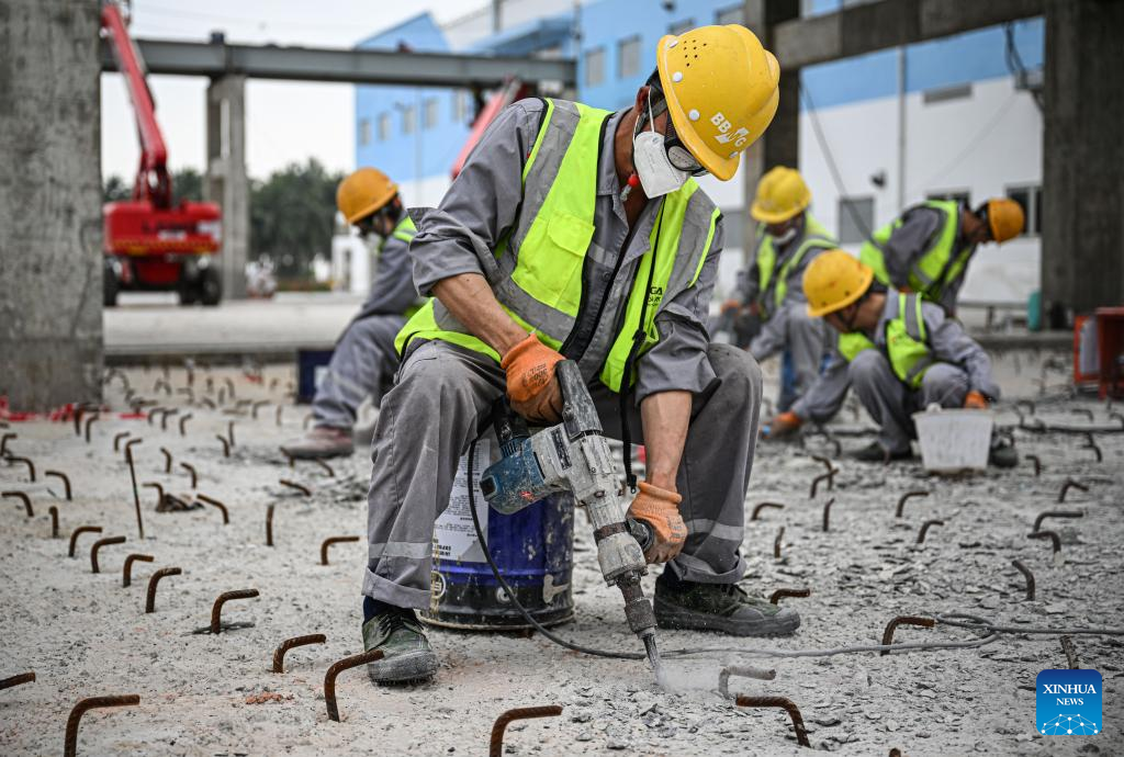 Workers work at the construction site of the Hainan commercial spacecraft launch site in Wenchang, south China's Hainan Province, March 6, 2024. Construction of the Hainan commercial spacecraft launch site is still underway. While the No. 1 launch pad was completed and in a debug phase, the No. 2 launch pad is still at the construction phase, with the capping of the diversion trough's main body finished. (Xinhua/Pu Xiaoxu)