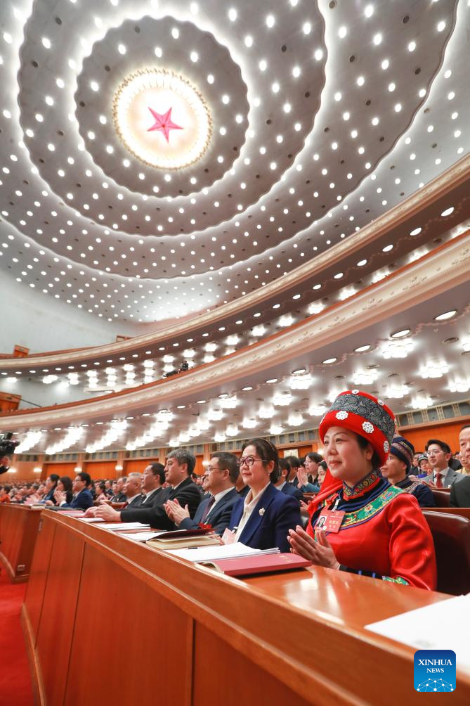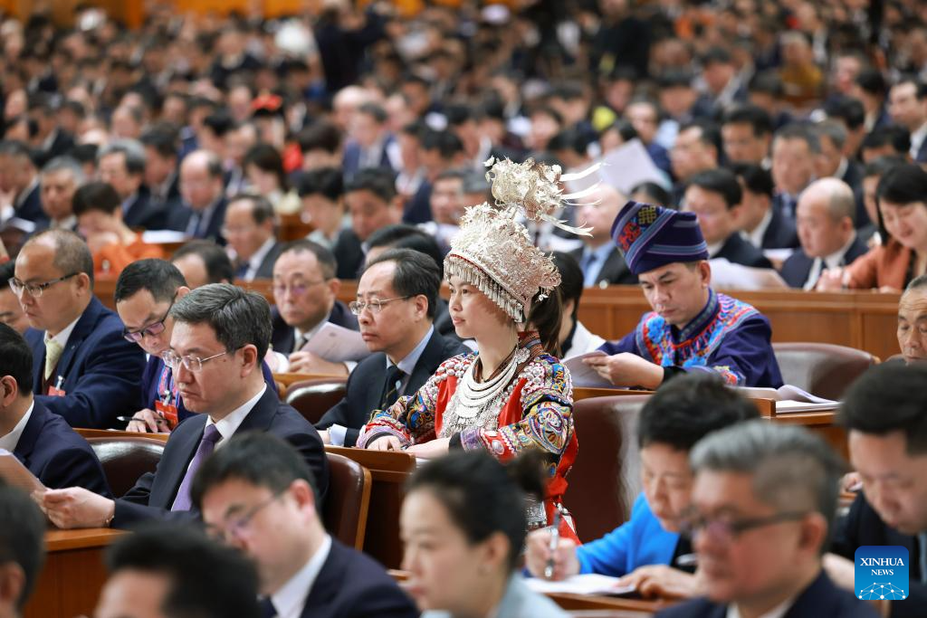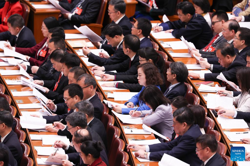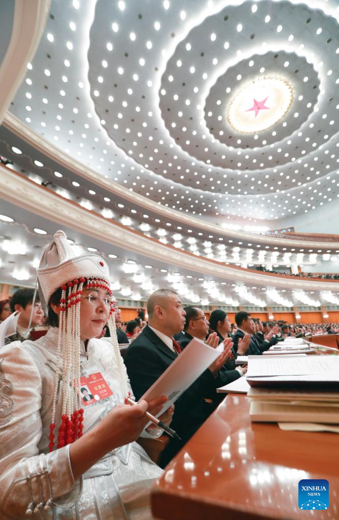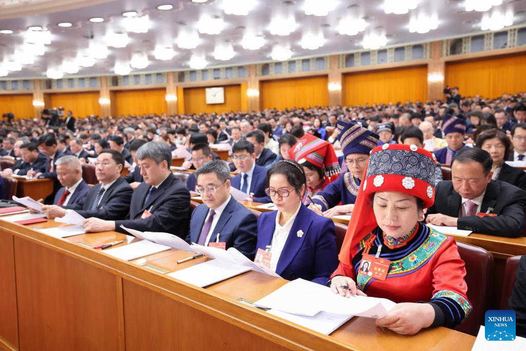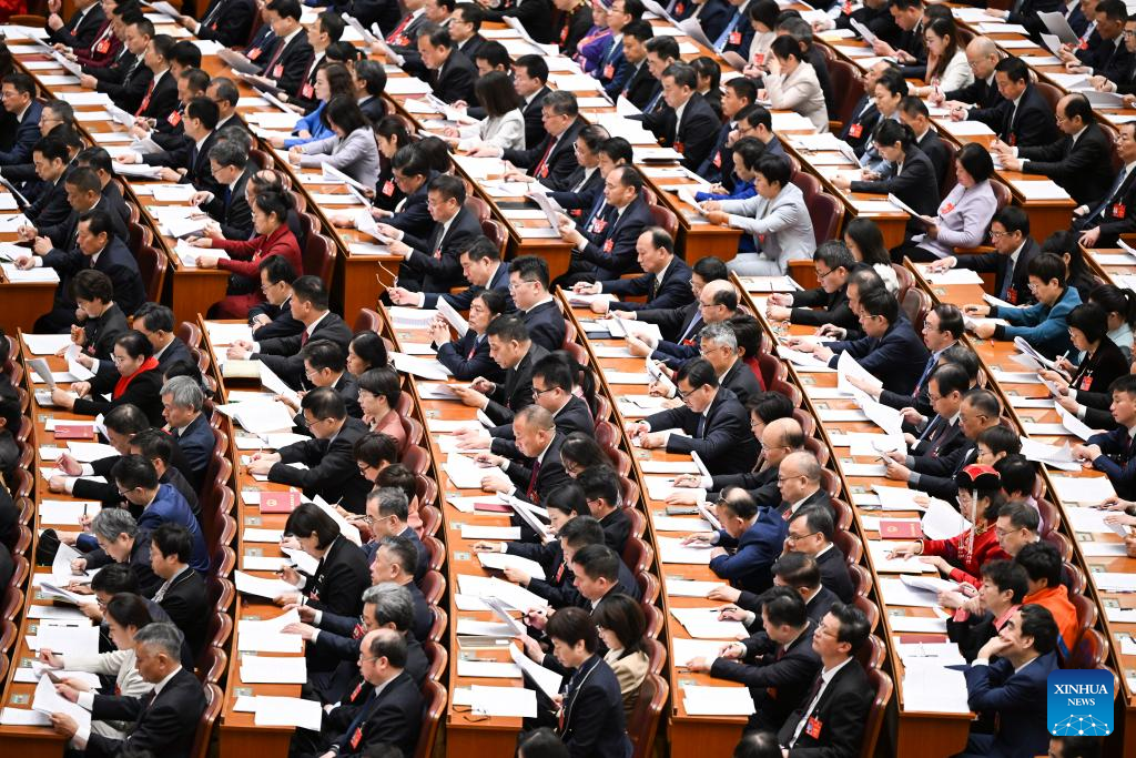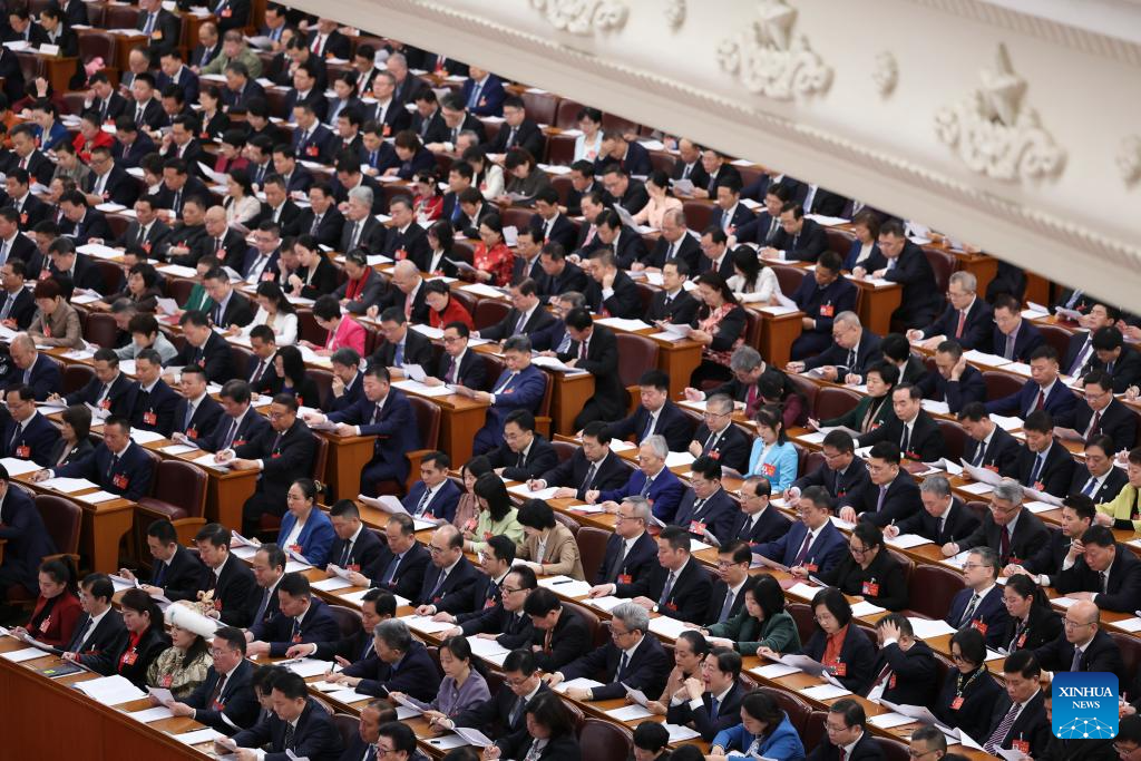 Deputies to the 14th National People's Congress (NPC) attend the second plenary meeting of the second session of the 14th NPC at the Great Hall of the People in Beijing, capital of China, March 8, 2024. (Xinhua/Lu Ye)