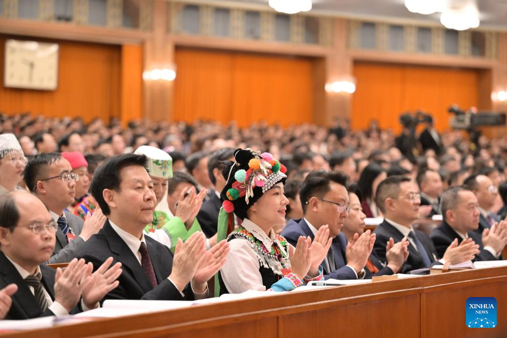 The second plenary meeting of the second session of the 14th National People's Congress (NPC) is held at the Great Hall of the People in Beijing, capital of China, March 8, 2024. (Xinhua/Liu Xu)