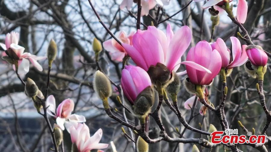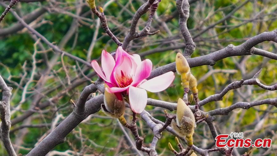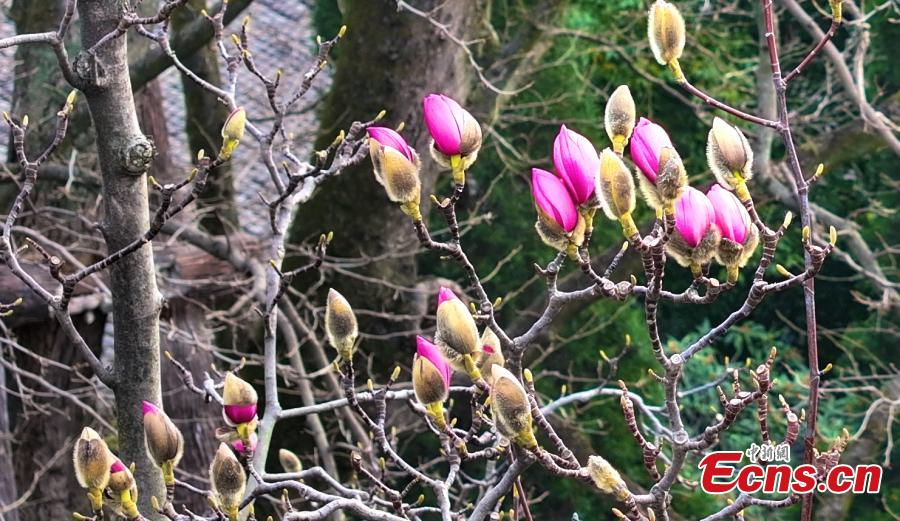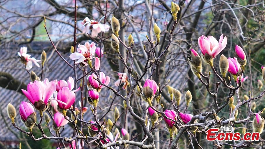 The world's only 400-year-old saucer magnolia tree, known as "Lotus on Land", is in full blossom at Wuhou Temple in Mianxian County of Hanzhong City, northwest China's Shaanxi Province, March 7, 2024. (Photo: China News Service/Shi Zhuanling)